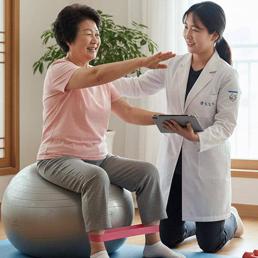 "OOO 물리치료사님 덕분에 뇌졸중으로 인한 마비 증상이 크게 호전되었습니다. 단순히 운동만 시키는 것이 아니라, 제게 맞는 운동법과 생활 습관까지 꼼꼼히 알려주시고, 늘 긍정적인 에너지로 치료에 임해 주셔서 포기하지 않고 재활할 수 있었어요. 이제는 일상생활이 훨씬 편안해졌습니다."